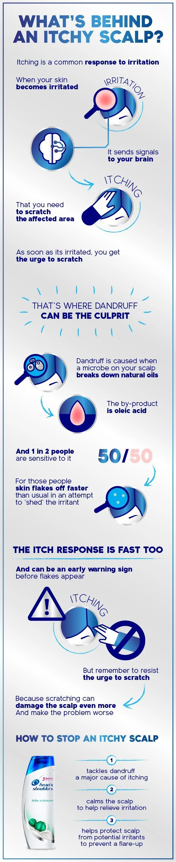 Understanding the root cause of the itchy scalp and to treat it accordingly is quite important. Concluding the right problem and causes can help you fasten the process of getting rid of the flaky and itchy scalp. To take right measures and use the right products can be a good-to-go initial solution for your hair. Being patient and figuring out the main cause - right products, diet, lifestyle can help you the best with itchy scalp. With Head and Shoulders, don't forget to shine brighter with your gorgeous dandruff-free hair!
